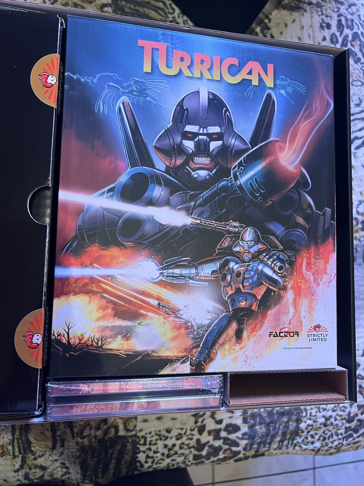 La Edición Ultra de Coleccionista incluye la Antología Turrican Vol. 1 y 2, una caja de coleccionista con cierre magnético, una figura exclusiva, un documental (Blu-ray), 4 bandas sonoras en CD, un libro de arte, una hoja de pegatinas, 4 tarjetas artísticas acrílicas, 4 posavasos Amiga, 2 pósteres reversibles grandes, un diorama acrílico, un pin de esmalte, una postal firmada (impresión) y un certificado de autenticidad. Antología Turrican Vol. I